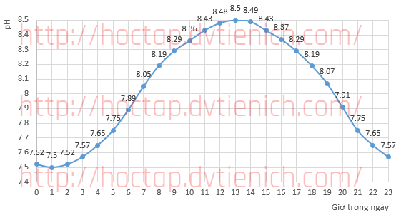 Tiến hành khảo sát pH của ao nuôi trong ngày có TAN cố định là 0,52 mg/L, kết quả thu được theo đồ thị sau: (Ảnh dùng tạm, đợi cập nhật)