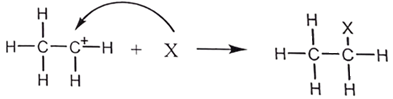 Giai đoạn 2 là quá trình kết hợp giữa carbocation với tác nhân X: