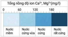 (Xem giải) Câu 9. Nước cứng gây nhiều trở ngại cho đời sống thường ngày. Các nguồn nước ngầm hoặc nước ở các ao hồ, sống suối thường có độ cứng cao bởi quá trình hòa tan các ion Ca2+, Mg2+ có trong thành phần của lớp trầm tích đá vôi. Dựa vào chỉ số tổng nồng độ của các ion Ca2+ và Mg2+ để phân chia độ cứng thành các cấp độ khác nhau như hình sau: