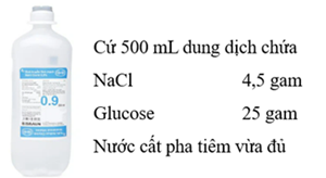 (Xem giải) Câu 23. Trên nhãn chai dịch truyền tĩnh mạch sodium cholride và glucose (dung dịch X) ghi các thông tinh như hình bên.