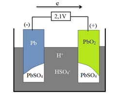 Tại cathode (cực dương): PbO2(s) + HSO4-(aq) + 3H+(aq) + 2e → PbSO4(s) + 2H2O(l)