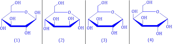 Các công thức cấu tạo biểu diễn hai dạng α-glucose và β-glucose lần lượt là