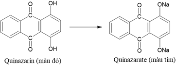 Để tạo ra nhiều loại thuốc nhuộm màu, người ta tìm cách điều chế các chất màu hữu cơ bằng con đường nhân tạo. Khi thay thế nguyên tử hydrogen trong nhóm -OH của thuốc nhuộm quinazarin có màu đỏ bằng nguyên tử kim loại như sodium thì chuyển thành chất nhuộm màu tím quinazarate theo sơ đồ sau: