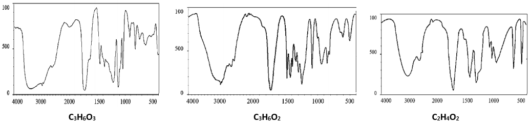 Các hợp chất C3H6O3, C3H6O2, C2H4O2 góp phần gây ra vị chua của phô mai. Phổ hồng ngoại IR của ba chất C3H6O3, C3H6O2, C2H4O2 được biểu diễn như sau: