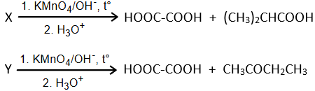 Mỗi chất tạo 2 sản phẩm nên X, Y đều có 1C=C. Một trong các sản phẩm là HOOC-COOH nên X, Y đều có 1COOH.