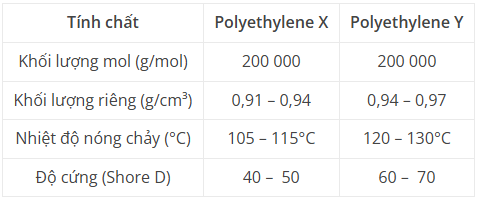 —> Khối lượng riêng, nhiệt độ nóng chảy và độ cứng của HDPE đều cao hơn LDPE.