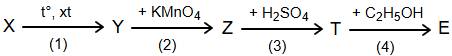 Biết reforming X thu được arene Y có công thức phân tử C8H10, E là o-C2H5OOC-C6H4-COOC2H5 được sử dụng làm thuốc trị ghẻ ngứa, côn trùng đốt.