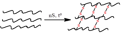 Khi cho cao su thiên nhiên tác dụng với lưu huỳnh thu được cao su lưu hóa. Cao su lưu hóa có các cầu nối disulfide (-S-S-) liên kết các chuỗi polymer lại với nhau tạo thành mạng lưới không gian được minh họa như hình sau: