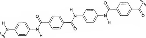 Kevlar là một polyamide có độ bền rất cao. Loại vật liệu này được dùng để sản xuất áo chống đạn và mũ bảo hiểm cho quân đội. Một đoạn mạch của Kevlar được mô tả như hình sau: