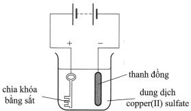 Một học sinh lắp bộ điện phân để mạ đồng lên một chiếc chìa khóa bằng sắt theo sơ đồ sau: