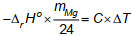 ΔrH° = – C × ∆T / nMg = -4205(418/15 – 25,5) / (0,5/24) = -477688 J ≈ -478 kJ