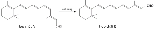 Sắc tố quang học trong võng mạc giúp mắt chuyển đổi ánh sáng thành tín hiệu thần kinh để truyền đến não, cho phép chúng ta nhìn thấy thế giới xung quanh. Hợp chất A là một phần của thành phần sắc tố quang học quan trọng trong tế bào võng mạc. Hợp chất A có thể chuyển hóa thành hợp chất B sau khi hấp thụ ánh sáng (phương trình mô tả cho dưới đây):