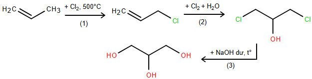 Sơ đồ điều chế glycerol từ propene được biểu diễn như sau: