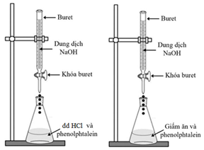 (d) Tại thời điểm kết thúc chuẩn độ, dung dịch trong bình tam giác của cả hai thí nghiệm đều có màu hồng nhạt