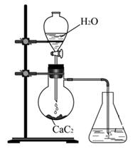 • Bước 1: Mở khoá phễu cho H2O chảy từ từ xuống bình cầu đựng CaC2.