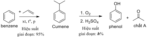 Trong công nghiệp, phần lớn phenol và chất A được sản xuất theo sơ đồ sau: