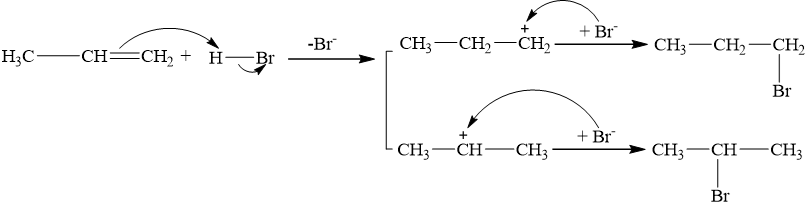 (a) CH3-CH=CH2 + HBr —> CH3-CHBr-CH3